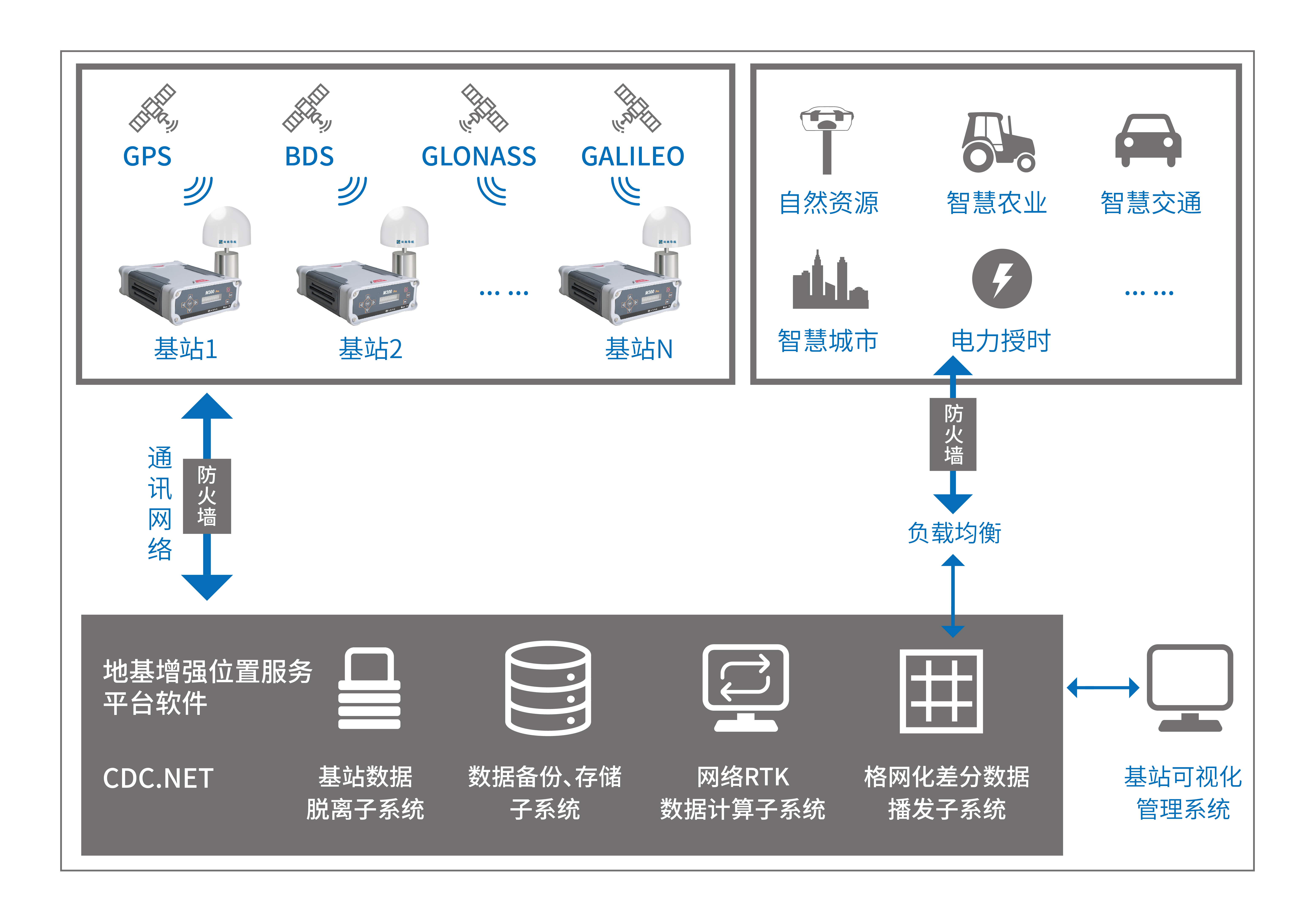 地基增强差分系统由连续运行基准站网、系统控制与数据中心、数据通信网络以及用户应用子、系统等组成,各子系统的定义与功能介绍如下。