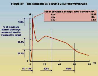 静电放电电流上升沿短,幅度高,所以会产生强度大,频谱宽的电磁场。上升沿为1ns的脉冲,带宽可达300MHz。
