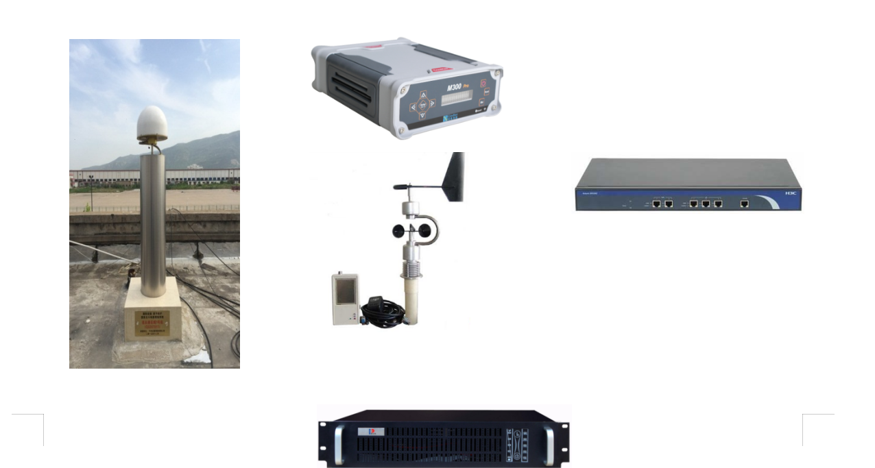 参考站的建设是CORS系统组建中的重点和难点部分,其中涉及很多的考虑因素,站点建设的质量决定后续CORS系统提供服务的质量。一个CORS站点必不可少的部分有天线、参考站接收机、气象仪、UPS电源、网络设备。参考站构成的重要部件如图1.3所示。参考站接收机作为CORS系统中关键的组成部分,需要完成卫星信号的采集、导航电文的产生、导航数据的分发等重要功能。司南导航研发的M300 Pro接收机就是比较典型的参考站接收机。