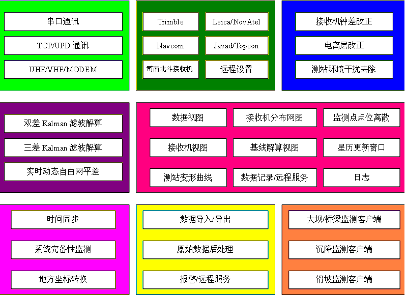 CDMonitor软件功能包括通讯传输、数据解码、误差改正、滤波解算、数据输出等模块,详见如下示意图。